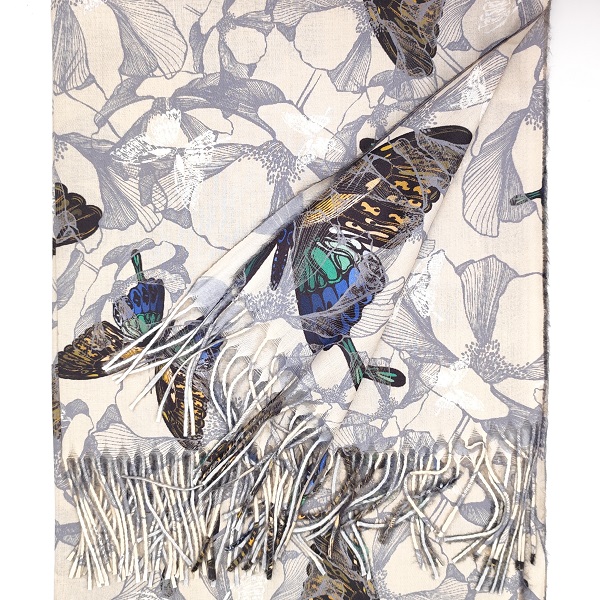 Бежов кашмирен шал с пеперуди и черни ръкавици-Дамски зимен комплект