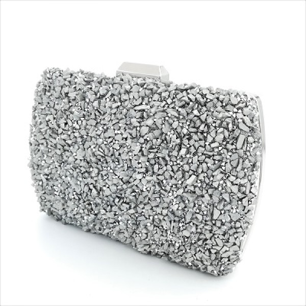 Тагове: официална дамска чанта, клъч, камъни, сребрист