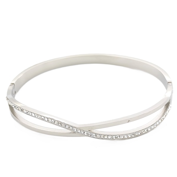 Дамска гривна от медицинска стомана с бели инкрустирани камъни и изискан дизайн