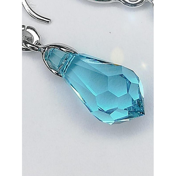Висящи обеци с кристали Сваровски в свеж летен цвят тюркоаз.