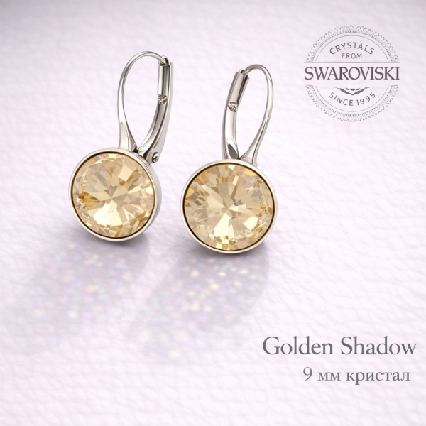 Висящи обеци с кръгли кристали Сваровски в цвят Golden Shadow
