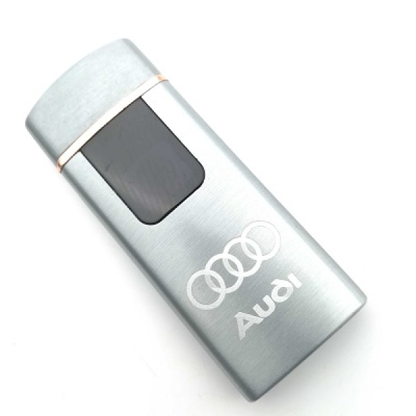 Луксозна електрическа запалка с логото AUDI в сив цвят. Идеална за всеки фен на марката АУДИ. Бъдете оригинални и неповторими с тази запалка. Може лесно и бързо да я заредите в автомобила си, чрез USB кабел, който върви в комплект със запалката. Получавате и подаръчна кутийка към нея.