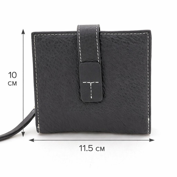 Практичен и стилен малък дамски портфейл от естествена кожа, създаден за удобно ежедневие. Моделът е в класически черен цвят, който лесно се комбинира с всяка дамска чанта или раница. Декоративните светли шевове подчертават формата и придават модерен акцент на дизайна.