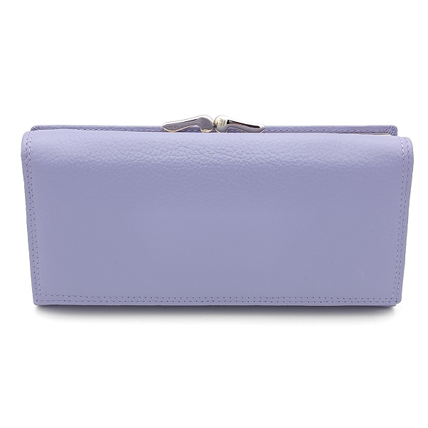 Елегантно дамско портмоне от италианска естествена кожа в лилав цвят, с практично разпределение за карти, банкноти и монети.