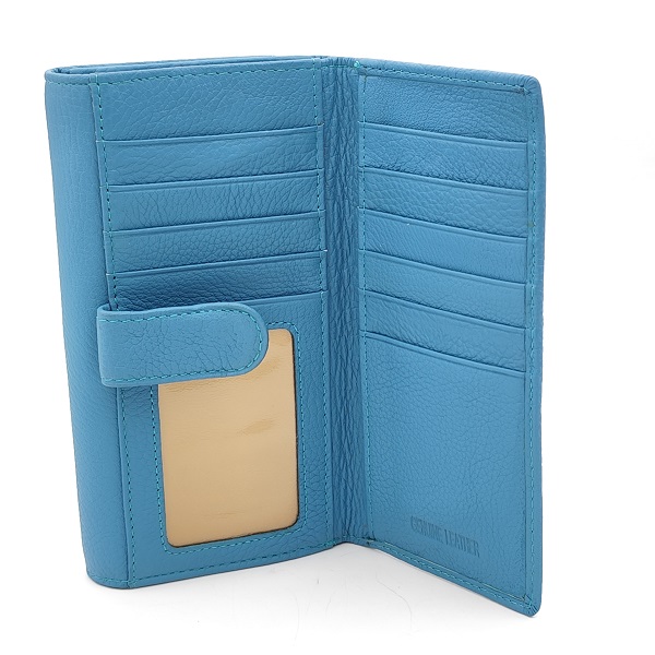 Дамско портмоне от естествена кожа светло синьо с много отделения за карти