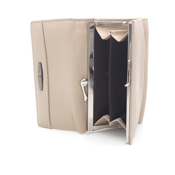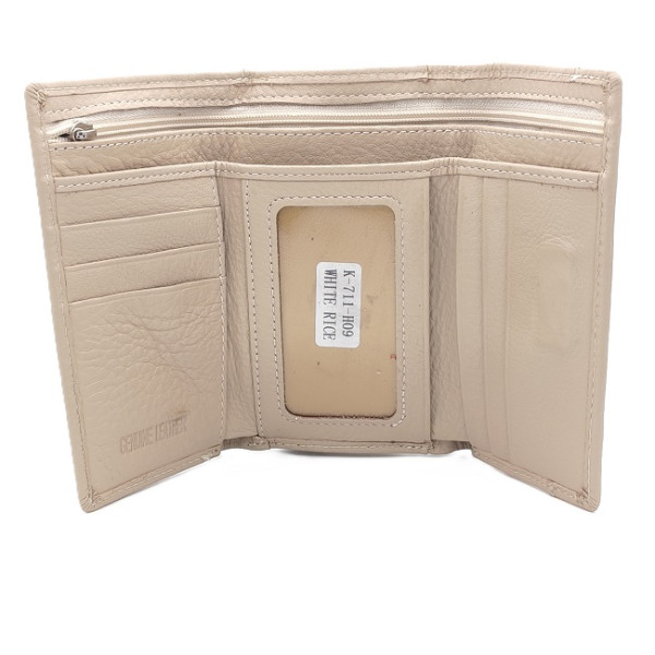 Дамско портмоне от естествена кожа малко светло бежово