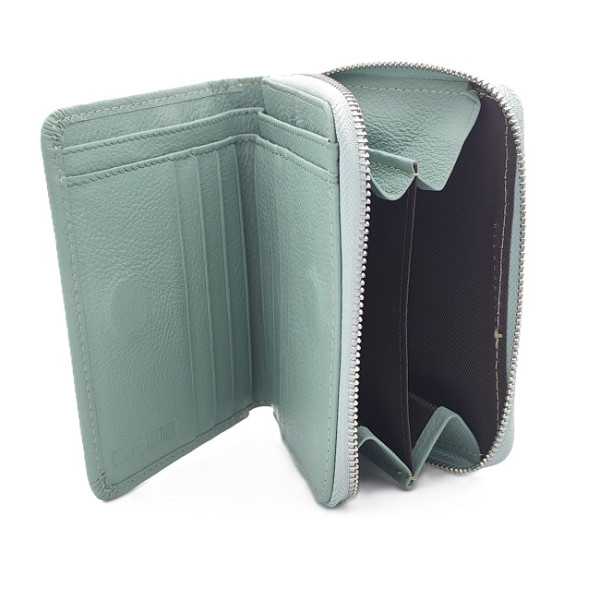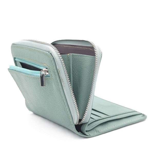 Дамско портмоне от естествена кожа с цип – свежест и удобство в ментово зелено