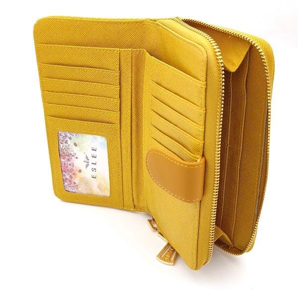 Дамско портмоне с много прегради и отделения в цвят Горчица