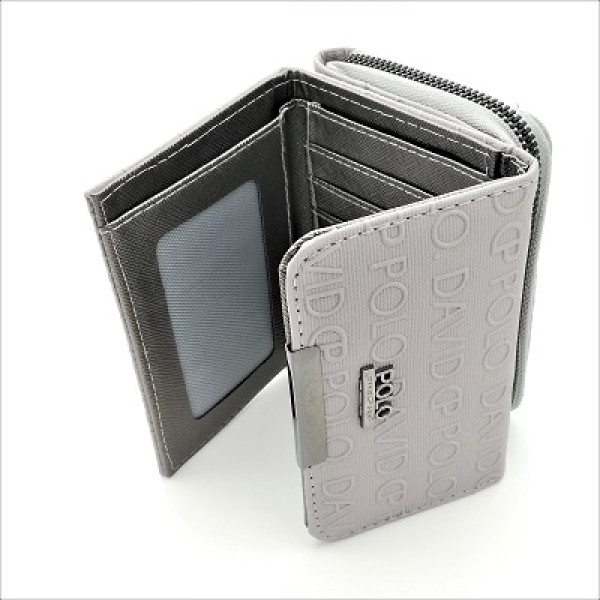 Малко дамско портмоне в сиво. Подходящ дамски аксесоар за подарък. Малко и компактно по размер, което позволява да го съберете дори и в най-малката чанта. В същото време има много прегради , които може да сложите вашите пари, карти и други лични документи.