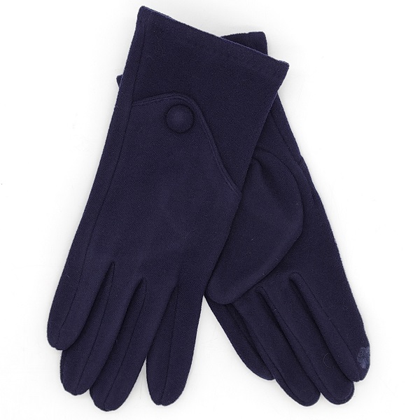 Елегантни дамски зимни ръкавици в тъмносин цвят – съчетание между стил и практичност. Изработени от мека и топла материя , подходящи за студените дни. На показалеца има бродирано цветенце, което изпълнява функция за тъч скрийн, позволявайки използване на телефон без сваляне на ръкавиците. Декоративното копче придава изискан акцент.