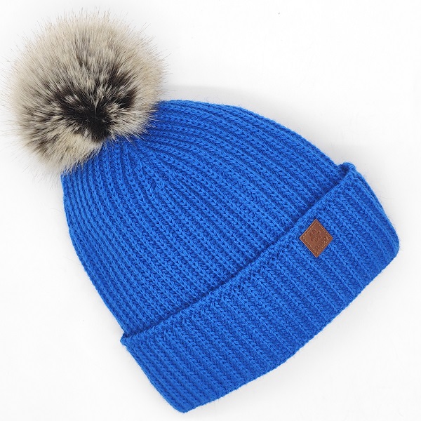 Дамска зимна шапка с пух в кралско синьо – българско производство