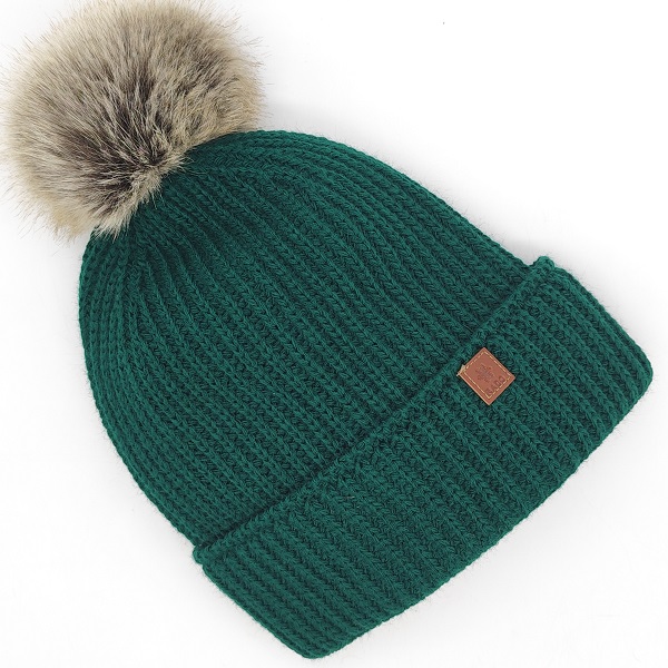 Дамска зимна шапка с пух в тъмнозелено – българско производство