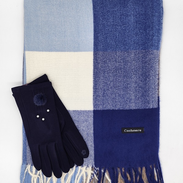 Комплект шал и ръкавици в синьо – Луксозен зимен подарък за жена