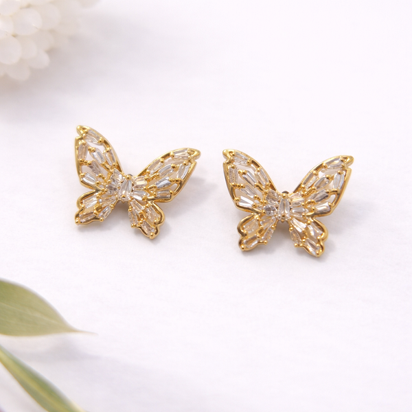 Златисти обеци пеперуди с камъни